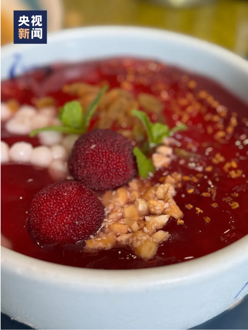 ヤマモモをフルーツとして販売するだけでなく、仙居県の人々はそれを使った料理も打ち出している。例えば、ヤマモモをスペアリブと組み合わせると、色も香りも口當たりにも優(yōu)れたヤマモモスペアリブが出來上がる。また、ヤマモモ味の氷粉(四川風ゼリーデザート)を暑い夏に食べると、さっぱりとしていてとてもおいしい。