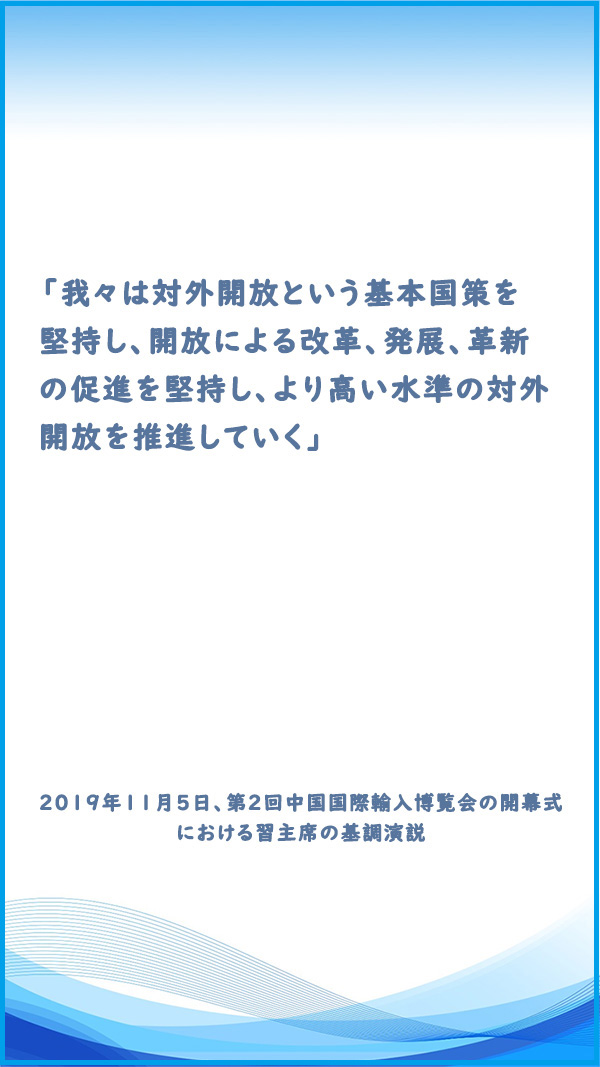 (2019年11月5日、第2回中國國際輸入博覧會の開幕式における習(xí)主席の基調(diào)演説)