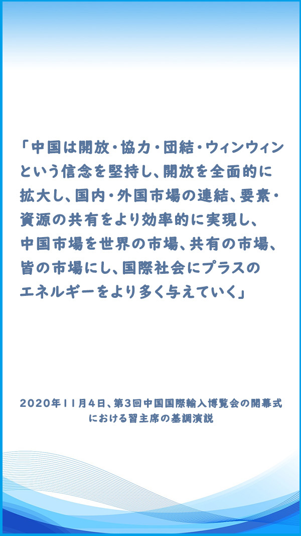 (2020年11月4日、第3回中國國際輸入博覧會の開幕式における習(xí)主席の基調(diào)演説)