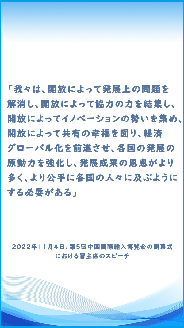 (2022年11月4日、第5回中國國際輸入博覧會の開幕式における習(xí)主席のスピーチ)