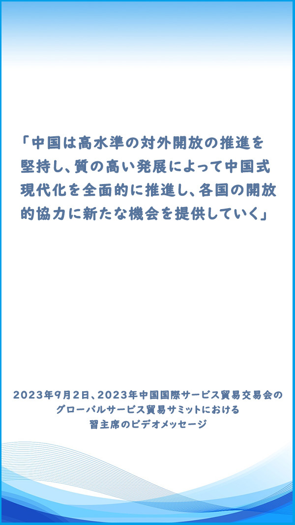(2023年9月2日、2023年中國國際サービス貿(mào)易交易會のグローバルサービス貿(mào)易サミットにおける習(xí)主席のビデオメッセージ)