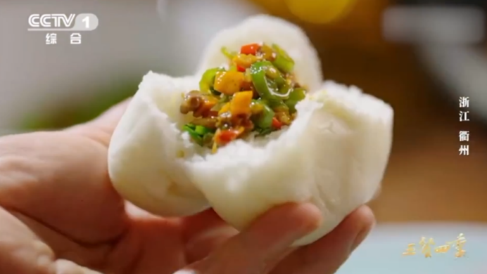 「橘皮杠醤(ミカンの皮入りピリ辛ソース炒め)」は、浙江省衢州市の人々が好む味と、安徽省の人々が好む味を組み合わせて作っている。スッキリとした柑橘系の味わいと楽しめるミカンの皮と牛肉、青唐辛子をしょっぱく、ピリ辛のソースで炒め、蒸したての饅頭(蒸しパン)に挾んで食べれば、幸せな気分に。