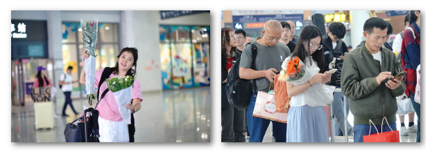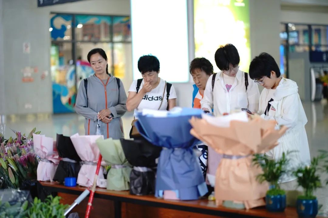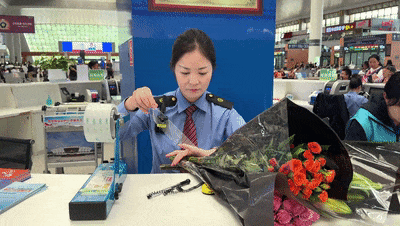 また昆明南駅の駅員たちは、セキュリティチェックの際、花びらが落ちたりしないように、花束を検査裝置に橫にして平らに乗せるようにと、旅客に注意を呼びかけている。駅の待合スペースのサービスデスクには、花を購入した旅客が包んだりしやすいように、セロハンテープなども用意されているという。