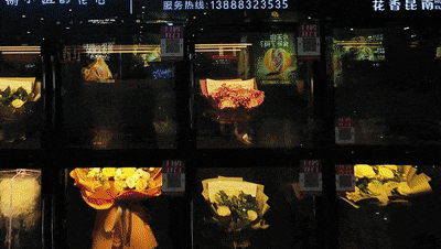 昆明南駅で下車した旅客は、出口付近にある自動販売機(jī)で花を購入することもできる。自動販売機(jī)のQRコードをスマホでスキャンして、指示に従って花を選び、決済を済ませると、自分が選んだ花束を購入することできる。