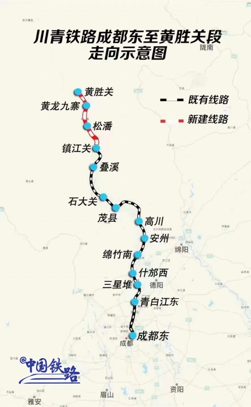 川青鉄道は、中國高速鉄道ネットワーク「八縦八橫」の蘭州、西寧と広州を結(jié)ぶルートにおいて重要な位置を占め、ネットワークにおいても非常に重要な構(gòu)成部分となっている。四川省の成都東駅と青海省の西寧駅を結(jié)ぶ全長約836キロの鉄道で、設(shè)計時速は200キロ。全線において區(qū)間ごとに分けて建設(shè)が進められており、間もなく開通するのは鎮(zhèn)江関‐黃勝関區(qū)間となっている。