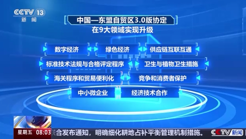 商務(wù)部(?。﹪?guó)際司(局)の責(zé)任者によると、ACFTA3.0の対象分野は、ACFTAの既存の分野に協(xié)力の大きな潛在力を秘める新興分野を加えた9つの分野に及ぶ。具體的には、デジタル経済、グリーン経済、サプライチェーンのコネクティビティ、標(biāo)準(zhǔn)?技術(shù)法規(guī)と合否判定手続き、衛(wèi)生と植物衛(wèi)生措置、稅関手続きと貿(mào)易の円滑化、競(jìng)爭(zhēng)と消費(fèi)者の保護(hù)、中小零細(xì)企業(yè)、経済技術(shù)協(xié)力の9分野。これらの合意は重要な先駆的意義を持つ。