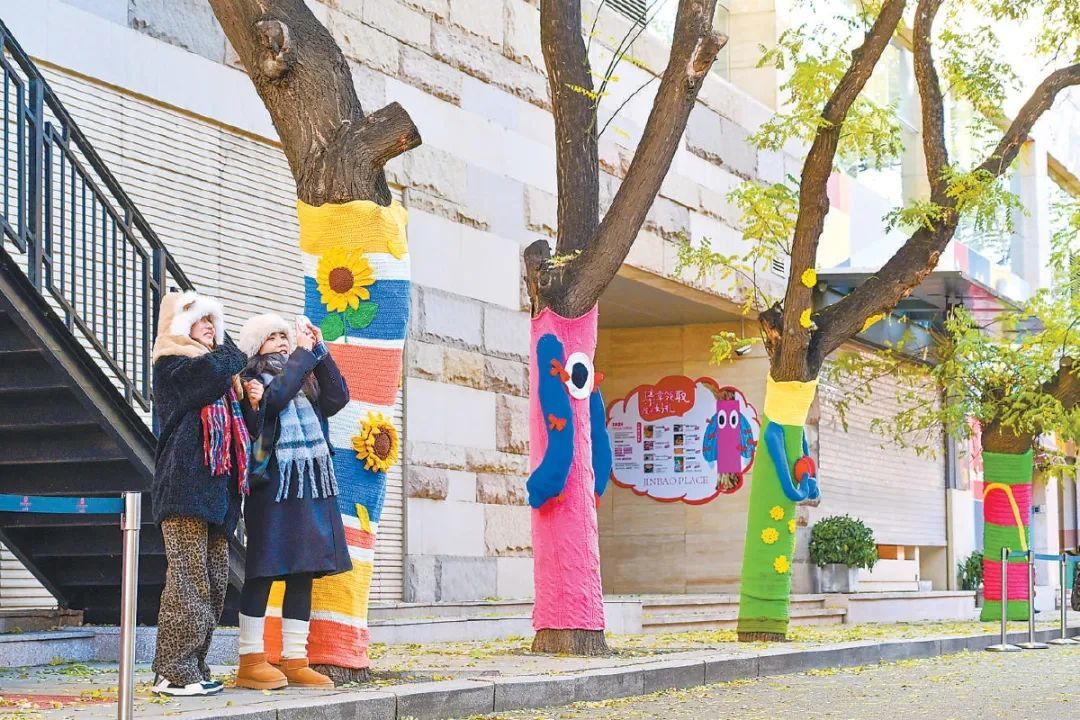 北京市東城區(qū)の紅星胡同に植わっている5本の木に最近、カラフルな「セーター」が著せられ、多くの市民が連日押し寄せ、「かわいい!」と評判になっている。