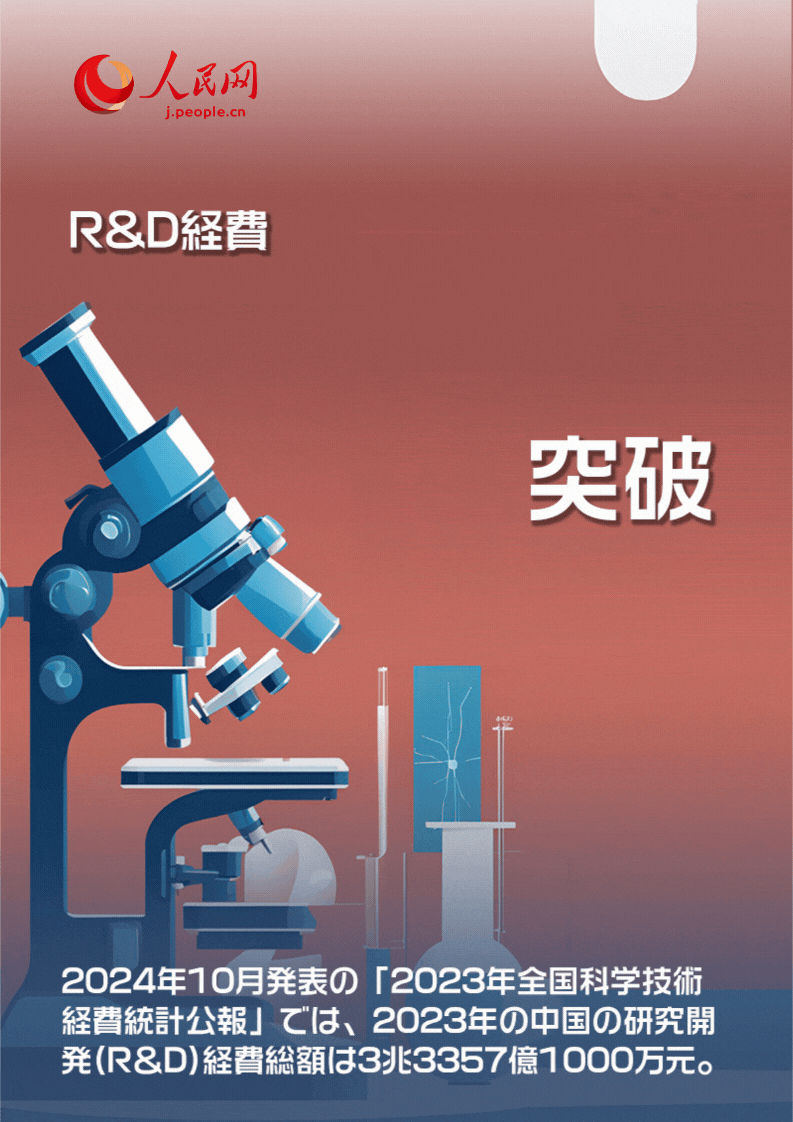 2024年10月発表の「2023年全國科學(xué)技術(shù)経費(fèi)統(tǒng)計(jì)公報(bào)」によると、2023年の中國の研究開発(R&D)経費(fèi)の総額は前年比8.4%増の3兆3357億1000萬元だった。
