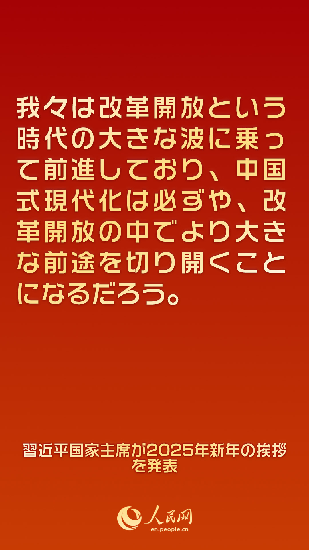 習(xí)近平國家主席は2024年12月31日、中央広播電視総臺(tái)(チャイナ?メディア?グループ/CMG)とインターネットを通して、2025年に向けた新年の挨拶を発表した。