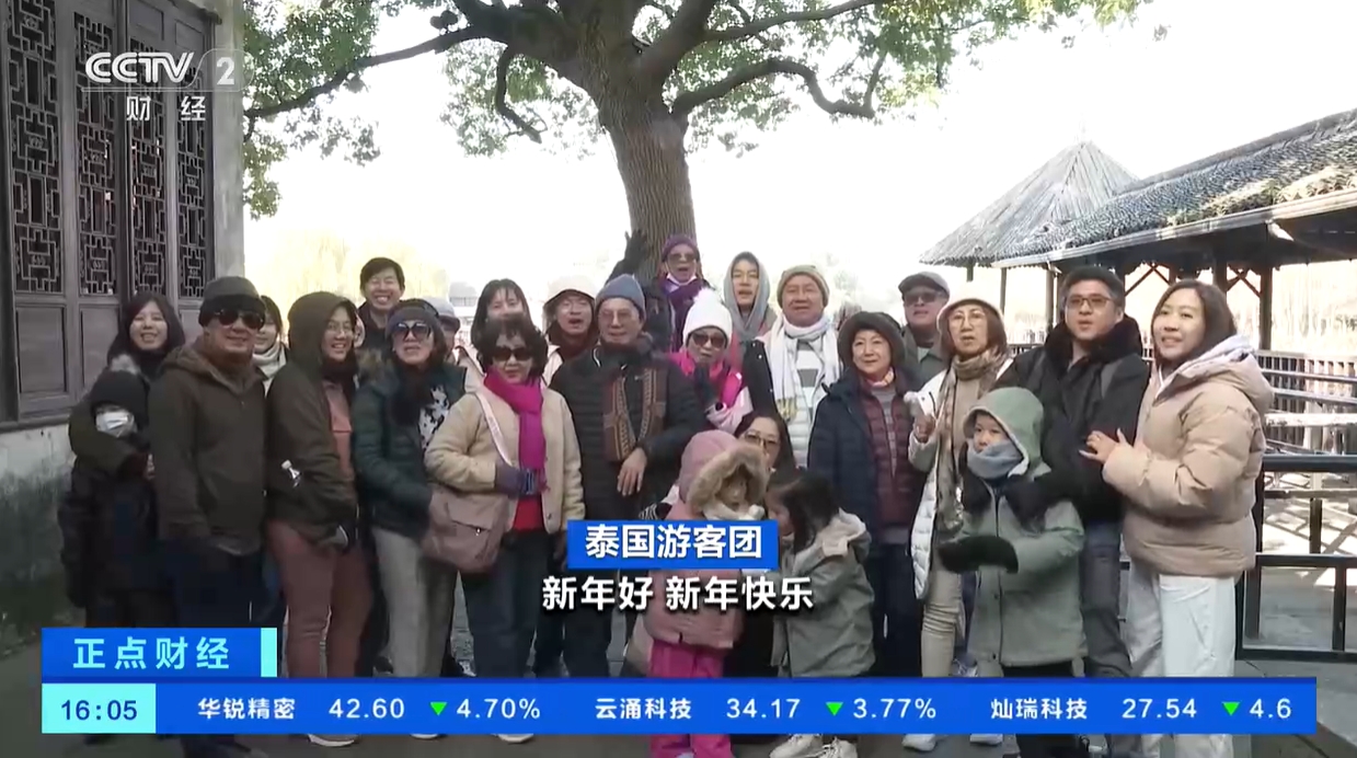 2025年の初日の出を迎えると、タイからの26人の団體ツアーが、中國旅行の最初の訪問地として江南地方の水郷?烏鎮(zhèn)を訪れた。烏鎮(zhèn)にとって今年初めて受け入れた海外からの団體客でもある?,F(xiàn)地では、外國人観光客の便宜を図るため、景勝地の看板は全て中國語と英語の2ヶ國語表記にし、英語を話せるプロのガイドのほか、タイ語や日本語などでサービスを提供できるプロのガイドも配置している。