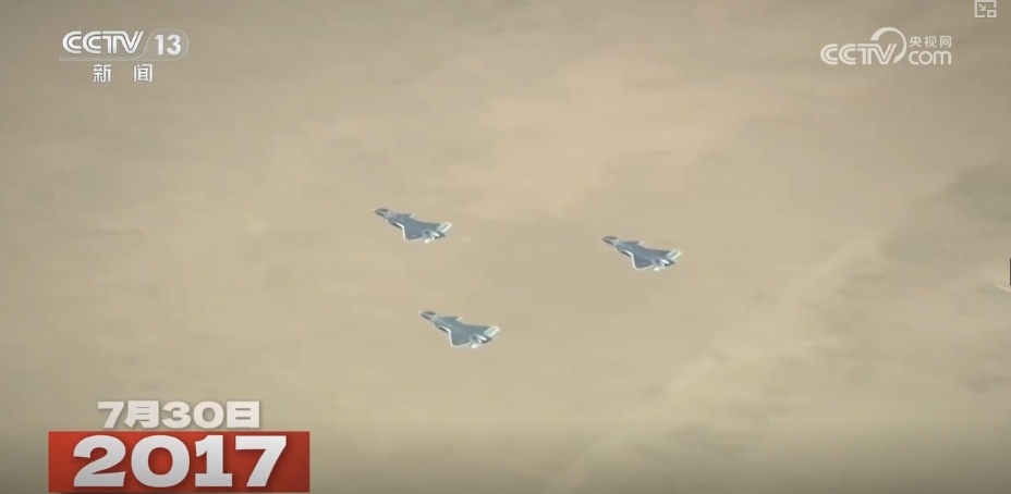 2017年7月、中國(guó)人民解放軍建軍90周年祝賀軍事パレードで、3機(jī)の「殲-20」が初めて戦闘態(tài)勢(shì)で公開(kāi)された。