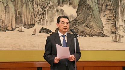 挨拶する在日本中國大使館の呉江浩大使。撮影?許可