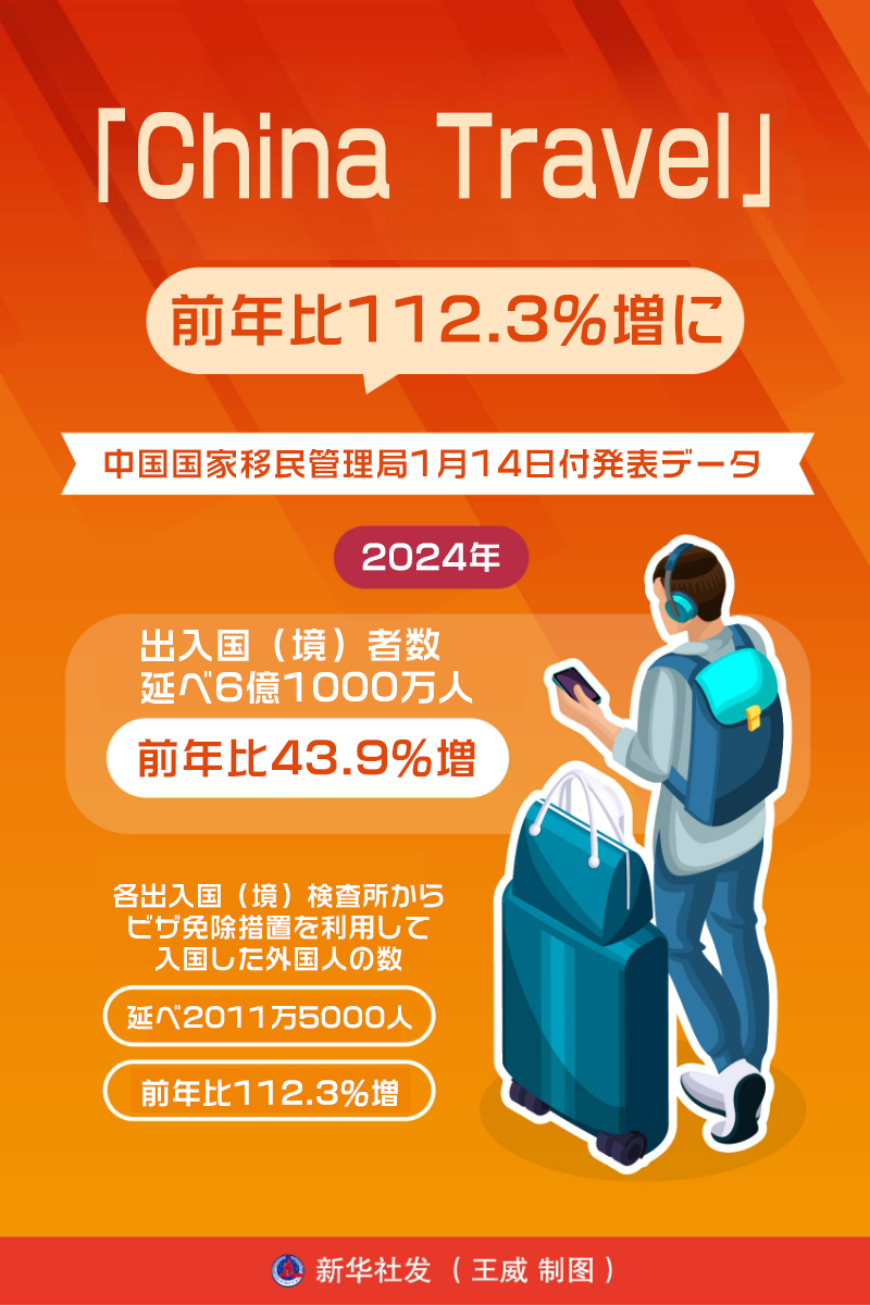 中國國家移民管理局が今月14日に発表した統(tǒng)計によると、2024年、中國の出入國(境)者數(shù)は前年比43.9%増の延べ6億1000萬人に達した。中國全土の各出入國(境)検査所から、ビザ免除措置を利用して中國に入國した外國人の數(shù)は前年比112.3%増の延べ2011萬5000人に達した。こうしたデータは、「China Travel」が大きなポテンシャルを秘めていることを?qū)g証している。