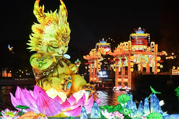 呉氏は、「今年の秦淮燈會(huì)のランタンの製作材料は、良く用いられる紙や絹に加え、ガラス繊維強(qiáng)化プラスチックや長繊維の材料を追加した。これによりランタンの造形能力を高め、活き活きとしたリアルな視覚効果を発揮したい」と説明した。(編集YF)