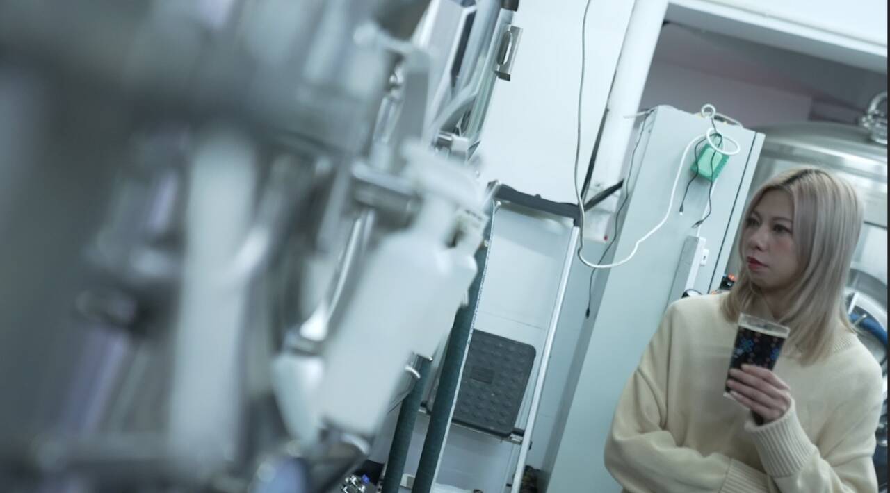 ビール工房でビールの出來具合をチェックする郭芷晴さん(撮影?袁蒙)。