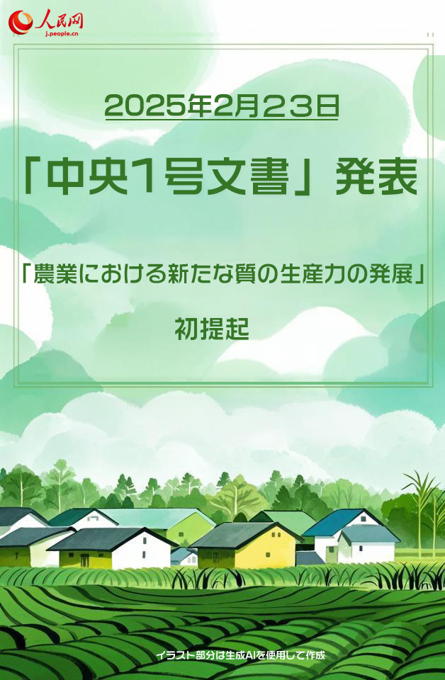 2025年の中央1號(hào)文書(中共中央?國(guó)務(wù)院の「千萬(wàn)プロジェクト」経験の學(xué)習(xí)?運(yùn)用による力強(qiáng)く効果的な農(nóng)村の全面的振興推進(jìn)に関する意見」)が23日に発表された。今年の中央1號(hào)文書では「農(nóng)業(yè)における新たな質(zhì)の生産力の発展」が初めて打ち出された。