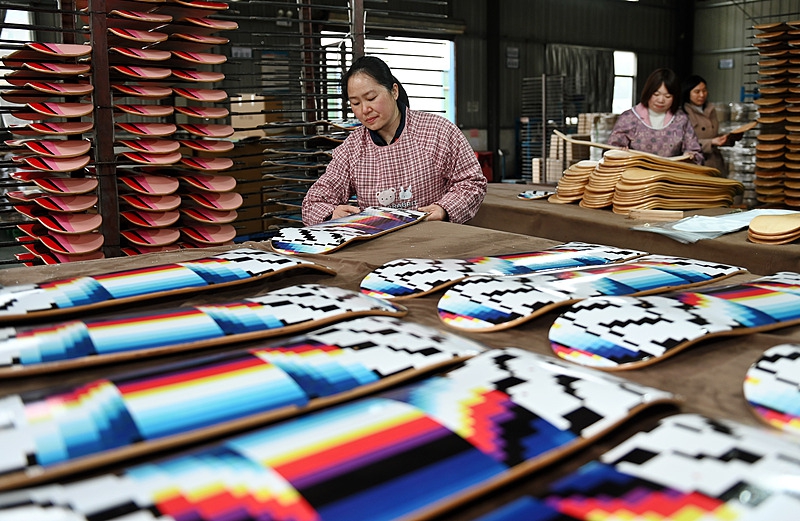 湖南省長沙市にある湖南省豊源體育科技有限公司を訪れると、さまざまなタイプのスケートボードが目に飛び込んできた。その中でもひときわ目を引いたのが、竹製のスケートボードだ。同社の生産責(zé)任者の幸忠亮さんは、「これは當(dāng)社の特徴的な製品で、市場での人気が高い」と話す。