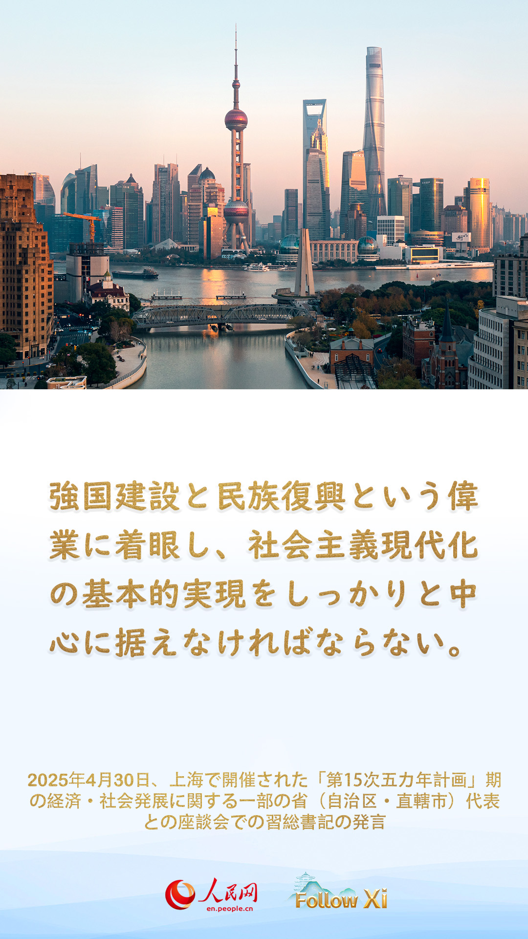 習(xí)近平総書(shū)記は4月30日、上海で「第15次五カ年計(jì)畫(huà)」期の経済?社會(huì)発展に関して一部の省(自治區(qū)?直轄市)代表との座談會(huì)を開(kāi)催し、重要談話を発表した。習(xí)総書(shū)記は「今年は第14次五カ年計(jì)畫(huà)(2021~25年)の最終年であり、計(jì)畫(huà)の目標(biāo)と任務(wù)の実行に拍車(chē)をかけると同時(shí)に、情勢(shì)の変化に適応し、戦略の重點(diǎn)を把握し、第15次五カ年計(jì)畫(huà)期の経済?社會(huì)発展を科學(xué)的にしっかりと計(jì)畫(huà)する必要がある」と強(qiáng)調(diào)した。