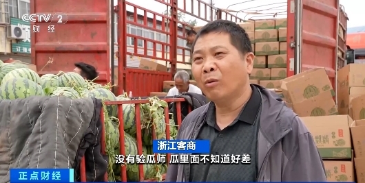 早朝6時(shí)、山東省菏沢市定陶區(qū)南王店鎮(zhèn)のスイカ市場(chǎng)はすでに活気に満ちていた。中國各地から來た業(yè)者が集まり、品質(zhì)の優(yōu)れたスイカを選び、各市場(chǎng)へと運(yùn)んでいく。では、大きさの異なるスイカの中から、どのようにおいしいスイカを見極めているのだろうか?その仕事を請(qǐng)け負(fù)うのがスイカ鑑定士で、他の地域からやって來る業(yè)者は事前に鑑定士に連絡(luò)して予約を入れておくと、糖度が高く、口當(dāng)たりの良いスイカを選んでもらえる。