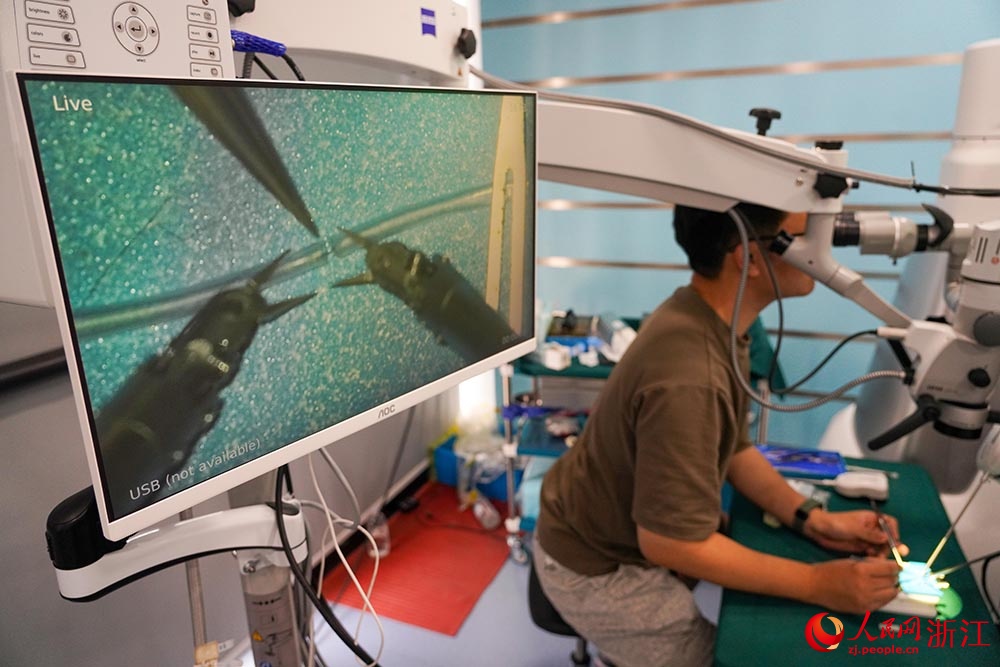 研究開発者は顕微鏡の前で息を凝らしながら、2本のロボットアームを操作し、髪の毛ほどの細(xì)い模擬血管に「糸を通す」作業(yè)を行っていた。ロボットアームの移動(dòng)、接続、縫合に伴い、切れた模擬血管が「シームレスに」につながれた。このほど、杭州銭塘スマートシティに位置する杭州迪視醫(yī)療生物科技有限公司(以下「迪視醫(yī)療」)実験室で、顕微外科手術(shù)支援ロボットが參加する模擬手術(shù)が行われた。人民網(wǎng)が伝えた。