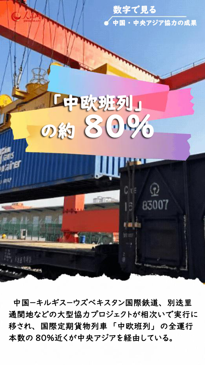 中國-キルギス-ウズベキスタン國際鉄道、別迭里通関地などの大型協(xié)力プロジェクトが相次いで実行に移され、國際定期貨物列車「中歐班列」の全運(yùn)行本數(shù)の80%近くが中央アジアを経由している。(出典:人民日?qǐng)?bào)、人民網(wǎng))