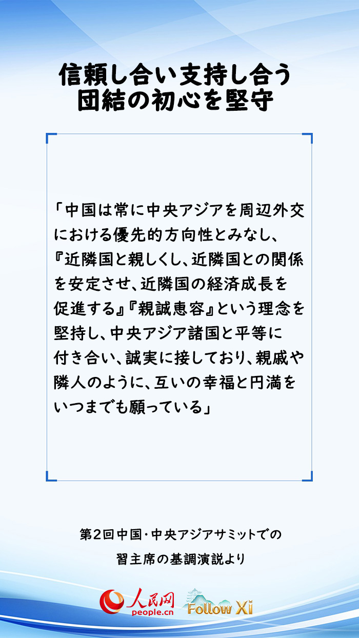 習主席は「『中國?中央アジア精神』を大いに発揚し、地域協(xié)力の質の高い発展を推進する」と題した基調演説を行い、「中國?中央アジア精神」の発揚について踏み込んだ説明を行った。(編集NA)