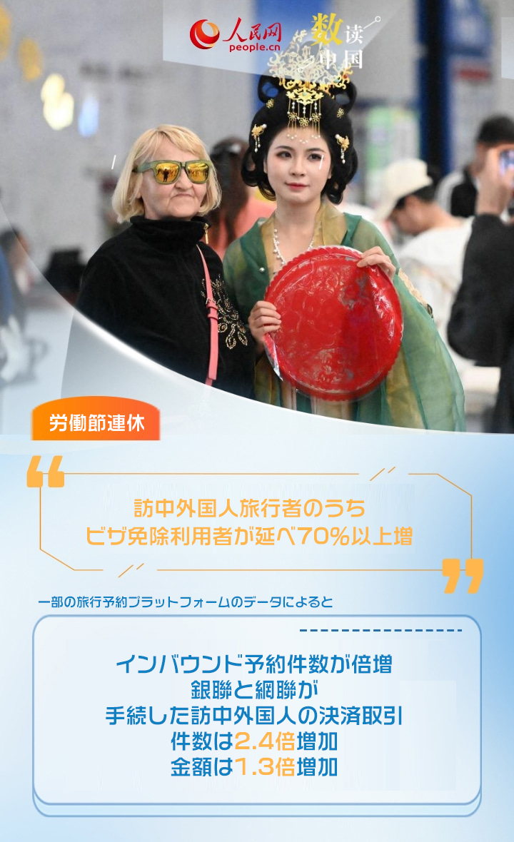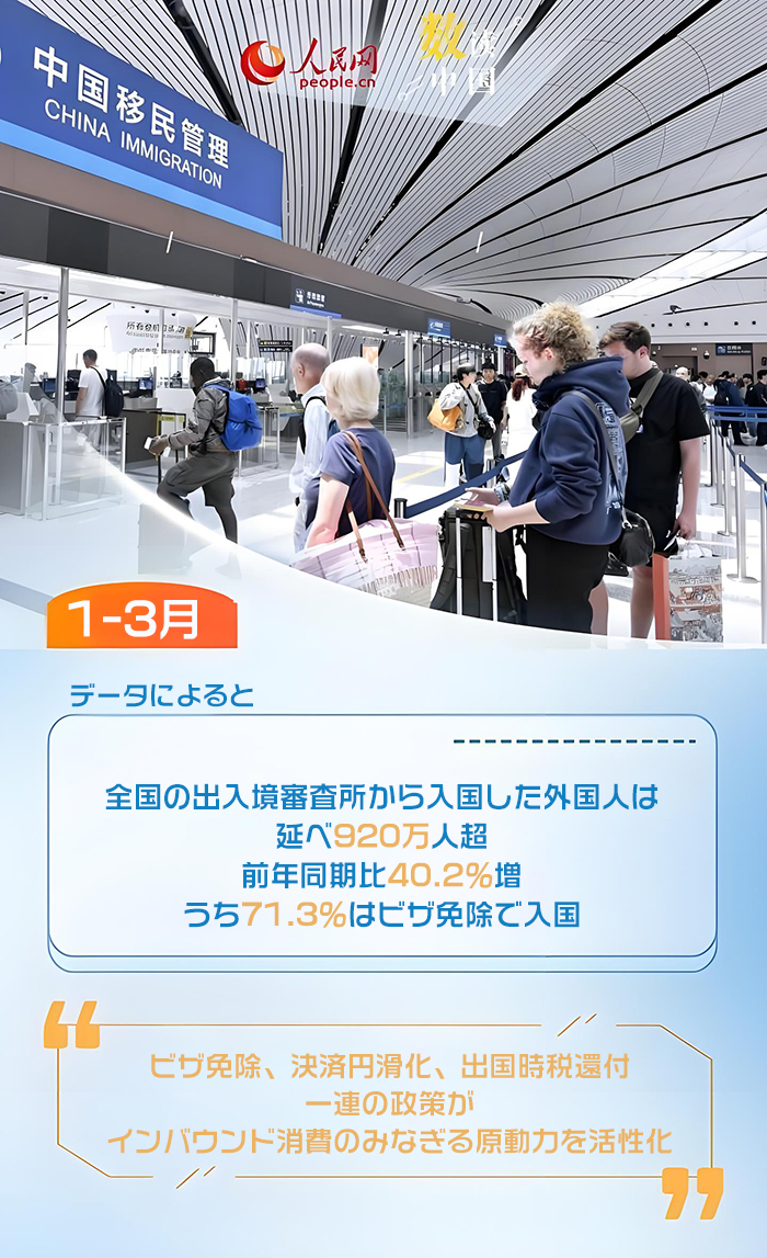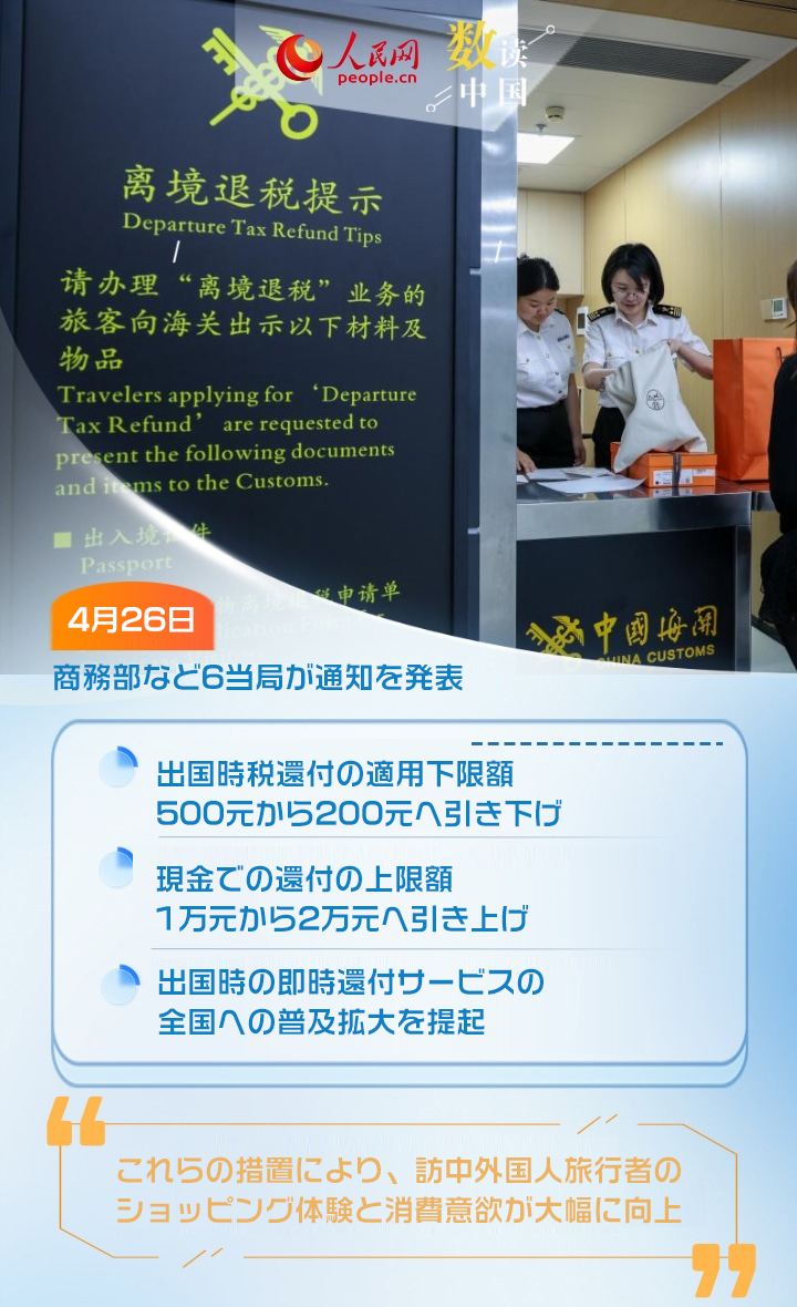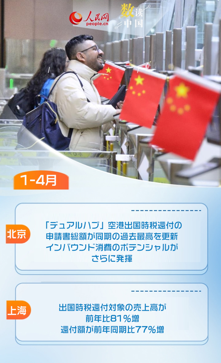 今年になってから、中國はビザ免除措置対象國の範囲を徐々に拡大し、人的往來を促進することにより、消費市場を活性化させている。最近は、出國時の稅還付や決済の円滑化などさまざまな政策措置が相乗効果を発揮し、多くの訪中外國人旅行者を呼び込み「旅行+ショッピング」という新しい消費スタイルを生み出している。次の6組のデータから、インバウンド消費のポテンシャルが加速度的に発揮される様子を感じてみよう。