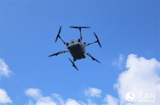 湖南省長沙市の吾悅広場の屋上では、「ブーン」という音とともに、ドローンの翼が高速で回転し、離著陸場から空中へと飛び立った。この「空飛ぶタクシー」が運(yùn)ぶ宅配便は、離陸から10分足らずで約5キロメートル離れたオフィスビルに到著した。