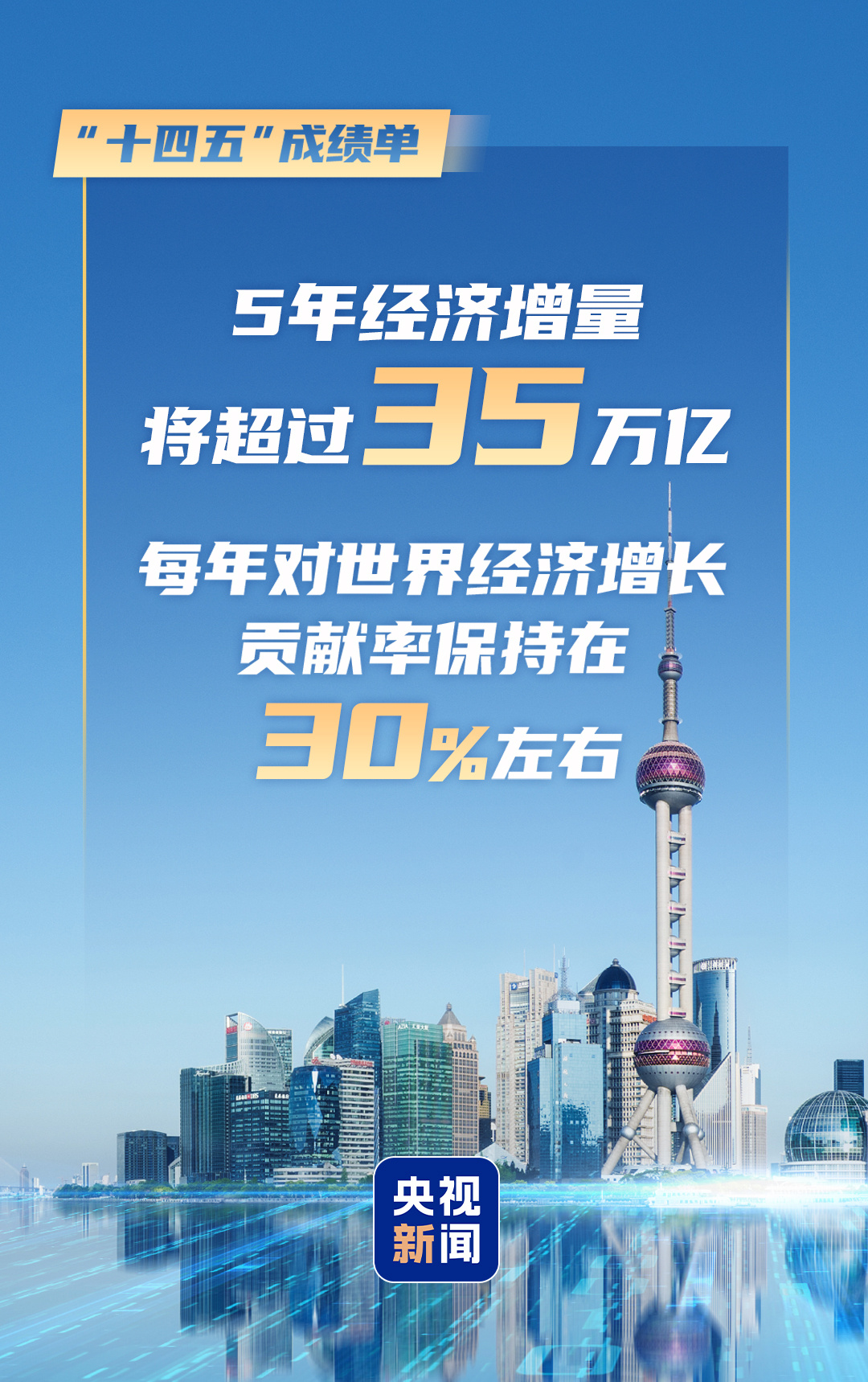 國(guó)家発展改革委員會(huì)の責(zé)任者は會(huì)見(jiàn)で、「『第14次五カ年計(jì)畫(huà)』の5年間で、中國(guó)の経済成長(zhǎng)は35兆元(1元は約20.5円)を超える見(jiàn)込みだ。これは、経済的に発達(dá)している広東省、江蘇省、山東省という3つの省の2024年の経済規(guī)模を合計(jì)した額に相當(dāng)し、長(zhǎng)江デルタ地域の経済規(guī)模を上回り、世界3位の國(guó)の経済規(guī)模も上回っており、年間の世界経済成長(zhǎng)への寄與率は30%前後を維持した。最初の4年間の経済成長(zhǎng)率は平均5.5%に達(dá)した」と説明。