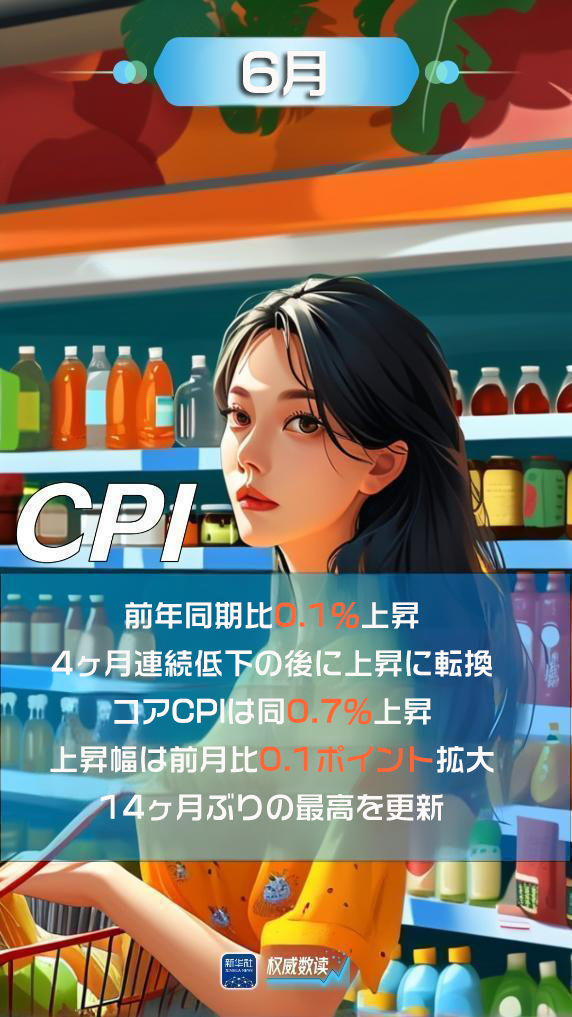 國(guó)家統(tǒng)計(jì)局が9日に発表したデータによると、今年6月は內(nèi)需拡大政策と消費(fèi)促進(jìn)政策が引き続き効果を発揮した。消費(fèi)者物価指數(shù)(CPI)は、前年比で見(jiàn)ると前月の低下から今月は0.1%上昇に転じた。前月比では0.1%低下したものの、低下幅は前月より0.1ポイント縮小した。食品とエネルギーを除いたコアCPIは前年同期比で引き続き上昇し、0.7%の上昇となった。生産者物価指數(shù)(PPI)は前月比で0.4%低下し、低下幅は前月と橫ばいだった。