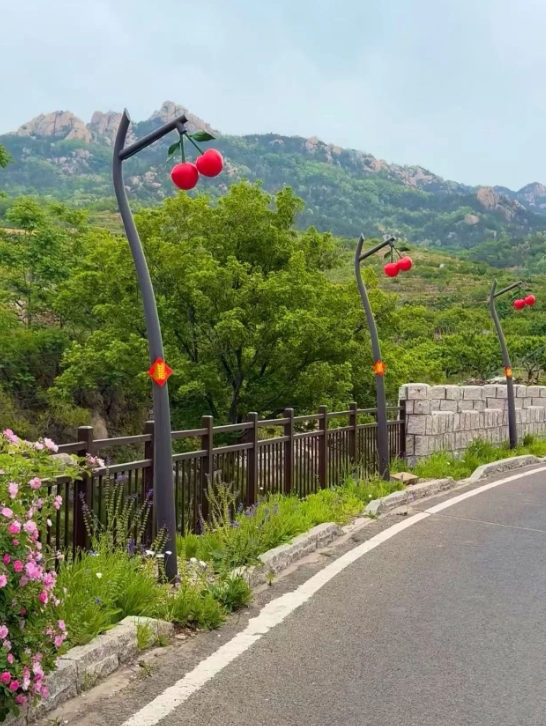 山東省青島市の「サクランボ」がデザインされた街路燈