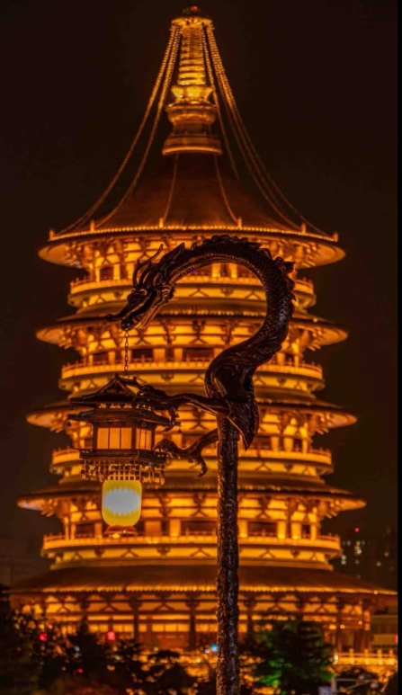 河南省洛陽市の竜がデザインされた街路燈と歴史ある建築物の見事な「調(diào)和」