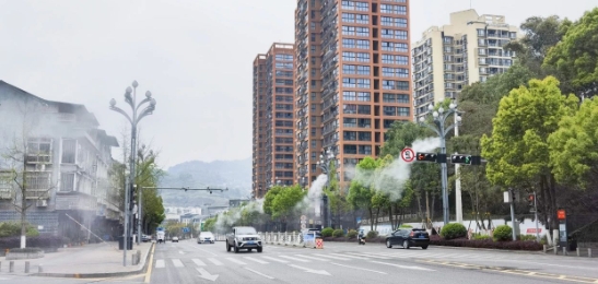 さらに斬新なアイデアを取り入れているのは重慶市萬盛區(qū)の街路燈で、ポールに噴霧裝置を搭載。砂ぼこりが舞い上がるのを抑制できるほか、夏には気溫を下げてくれ、暑さ対策にもなる。