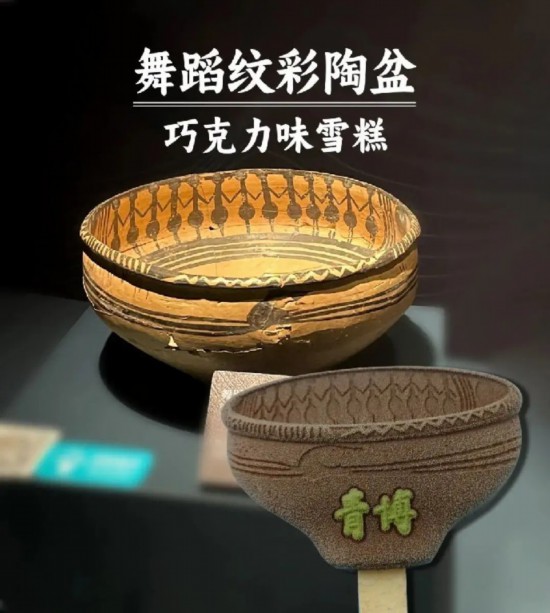 青海省博物館が打ち出した舞蹈紋彩陶盆のアイスは、高原限定のつぶつぶアイス。弾けるプチプチ食感のハダカムギが入ったチョコレートアイスを食べれば、踴る人の文様みたいに踴りだしたくなるかも?