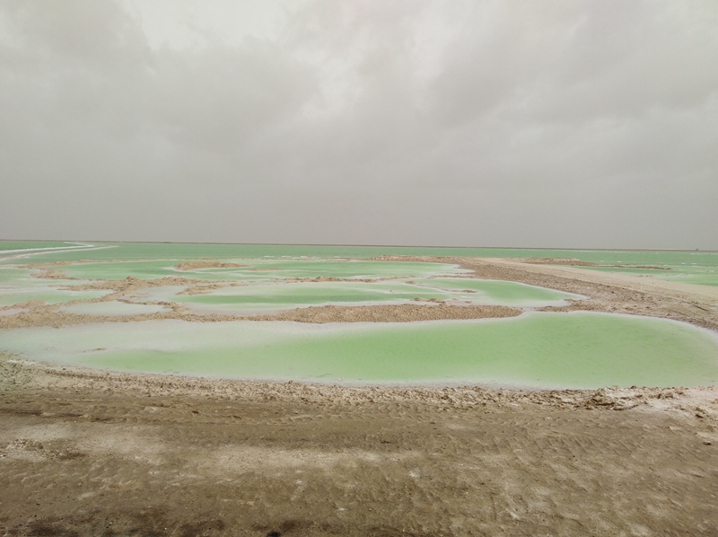 青海省ゴルムドのチャルハン塩湖。あいにくの天気でしたが、エメラルドグリーンの湖面は息を呑む美しさでした。長(zhǎng)距離移動(dòng)や高山病の苦しさも吹き飛ぶ絶景です。
