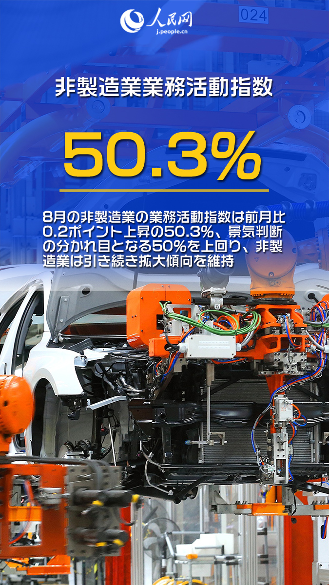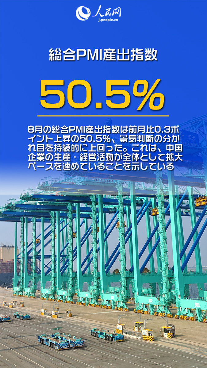 國家統(tǒng)計局サービス業(yè)調(diào)査センターと中國物流?購買連合會が8月31日に発表したデータによると、8月の製造業(yè)購買擔(dān)當(dāng)者指數(shù)(PMI)は前月比0.1ポイント上昇の49.4%で、製造業(yè)の景況感が改善した。非製造業(yè)の業(yè)務(wù)活動指數(shù)は前月比0.2ポイント上昇の50.3%となり、景気判斷の分かれ目となる50%を上回り、非製造業(yè)は引き続き拡大傾向を維持した。また、総合PMI産出指數(shù)は前月比0.3ポイント上昇の50.5%で、景気判斷の分かれ目を持続的に上回った。これは、中國企業(yè)の生産?経営活動が全體として拡大ペースを速めていることを示している。