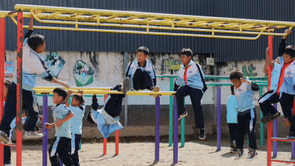 これらの學(xué)校には、朝のジョギングや休み時間、體育の授業(yè)、課外活動などがたくさん設(shè)けられており、児童は木々が茂る山や林、野原などを駆け回ったり、そこで遊んだりしているため、目が自然光を浴びる時間が長い。戈的小學(xué)校の校長は、「子供の目を輝かせるためには、屋外で過ごしてもらうのが一番」と話す。
