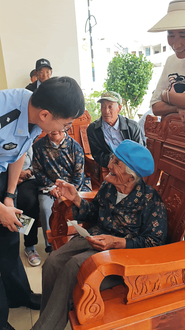警察官が管轄區(qū)の高齢者のために「移動する寫真館」という取り組みを始めたのは、2024年9月のことだった。それは雲(yún)南怒江辺境管理支隊(duì)の警察官が老人ホームを訪問した時に、高齢者に「前回寫真を撮ったのはいつのこと?」と何気なくたずねたことがきっかけだった。その時、ほとんどの高齢者が身分証明書の寫真以外、ほとんど寫真を撮ったことがないということを知ったのだという。