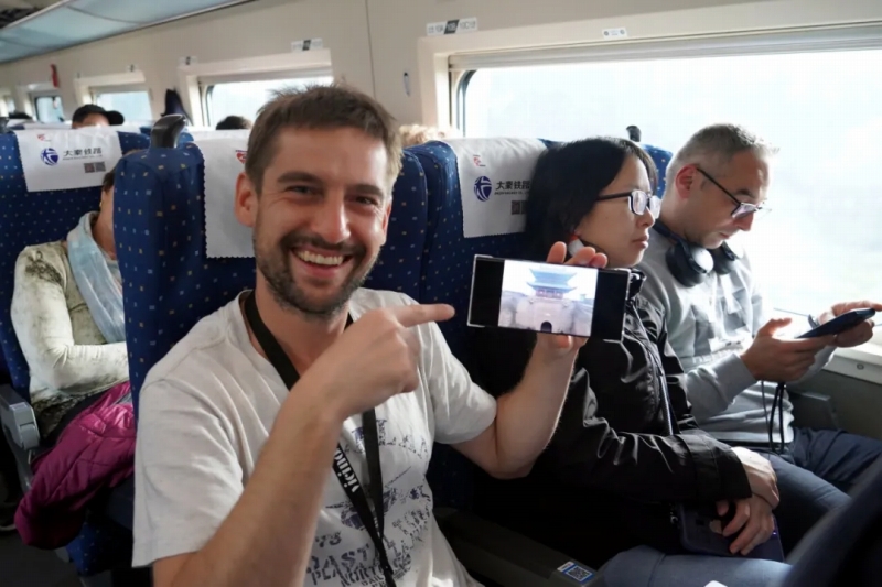 「初めて中國(guó)に來(lái)て、すでに13日が経った。これまで見(jiàn)てきた景色は非常に美しかった。列車の車內(nèi)は広々としており、とても快適!」