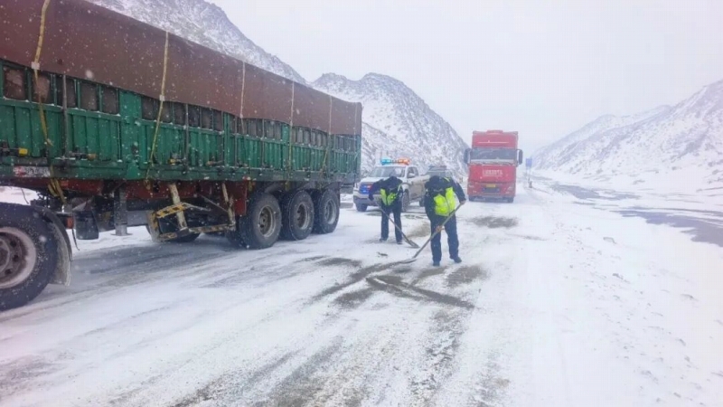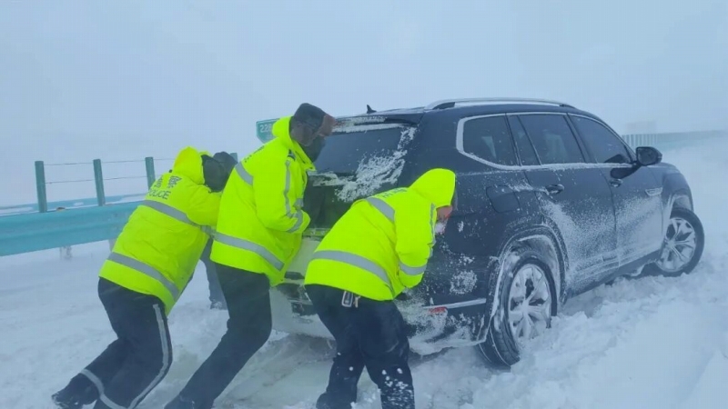 この突発的な事態(tài)発生を受け、伊吾県公安局交通管理大隊(duì)は緊急時(shí)対応を始動(dòng)し、救援活動(dòng)に警察官を総動(dòng)員した。救援隊(duì)は吹雪の中、道路の狀況を調(diào)査し、立ち往生している人たちに食べ物や飲み物などを?qū)盲堡?。さらに、車が秩序に基づいて通行できるようパトカーで誘導(dǎo)し、危険な狀況が起きることを全力で防いだ。山間部の吹雪となった區(qū)間の視界は5メートル未満で、積雪量は10センチに達(dá)した。交通警察は手で車を押したり、雪かきをしたりして立ち往生している車をサポートした。救援の過程において、必要な物資500セット以上を人々に屆けたほか、立ち往生している車13臺(tái)を救出した。また、パトカーによる先導(dǎo)で車1000臺(tái)以上が安全に通行できるよう誘導(dǎo)した。(編集KN)